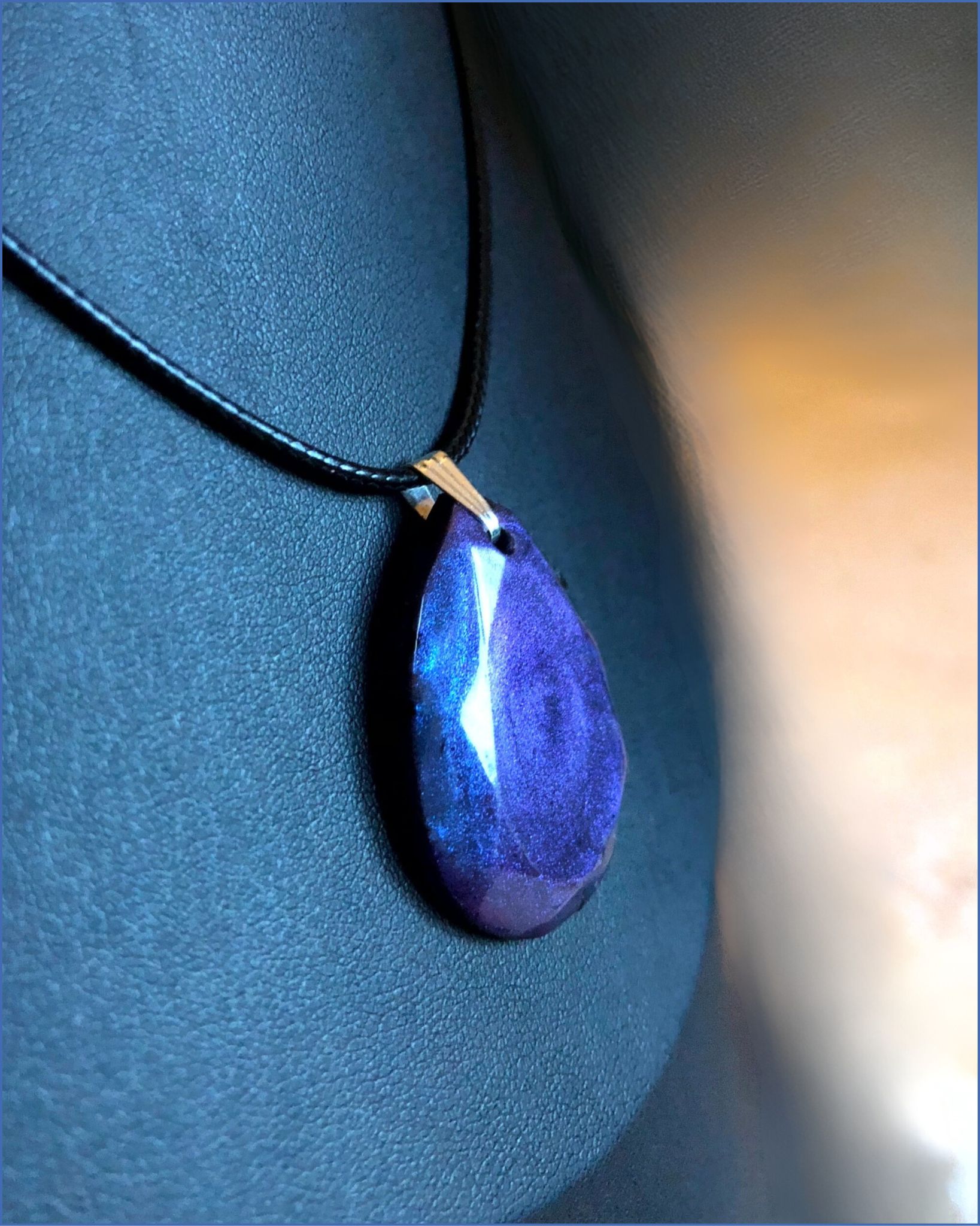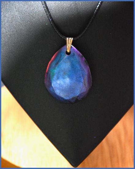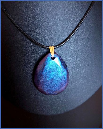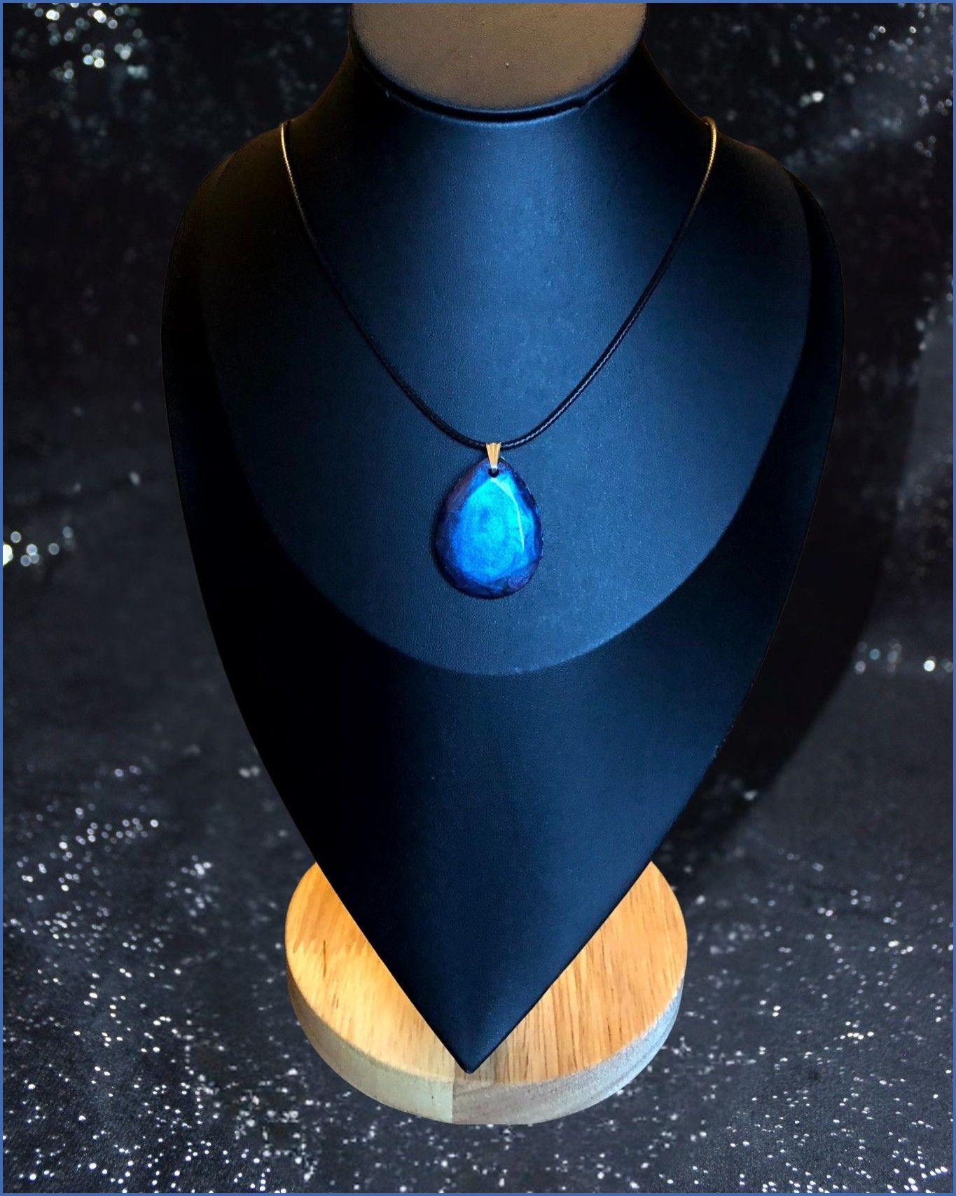 Ce collier avec ses effet bleus ou violets selon la lumière est fait pour toi ! Il est unique avec ses couleurs qui rappellent le cosmos …