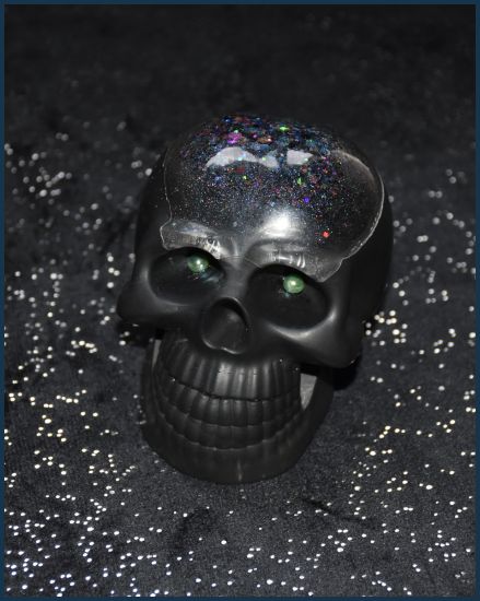 Couleurs : Noir , paillettes multicolore et perles vertes pour les yeux