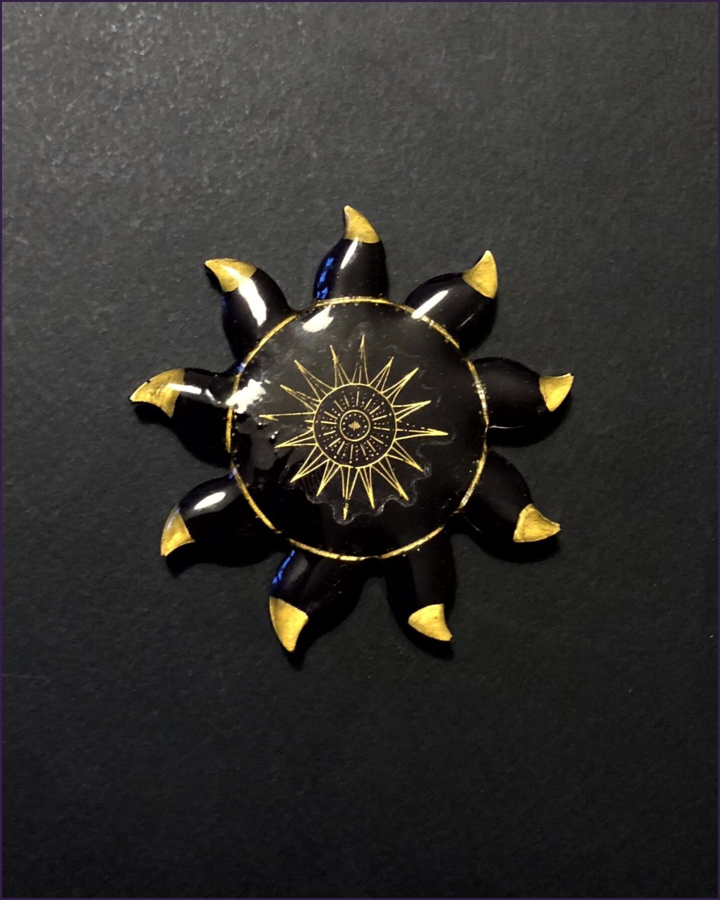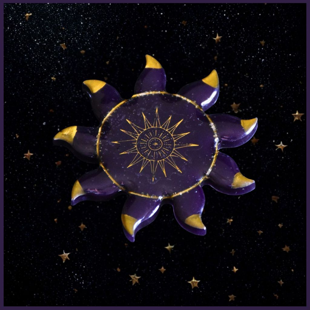 Composition : Biorésine , colorant naturel : mica , sticker, dorure peinte à la main à la peinture à l’huile et aimant